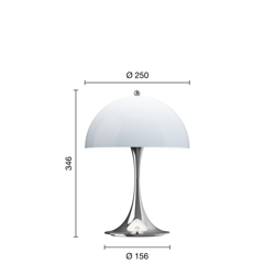 Louis Poulsen Panthella 250 Portable V3 Tischleuchte/Akkuleuchte, Chrom/original blaugrau Opal - entworfen von Verner Panton