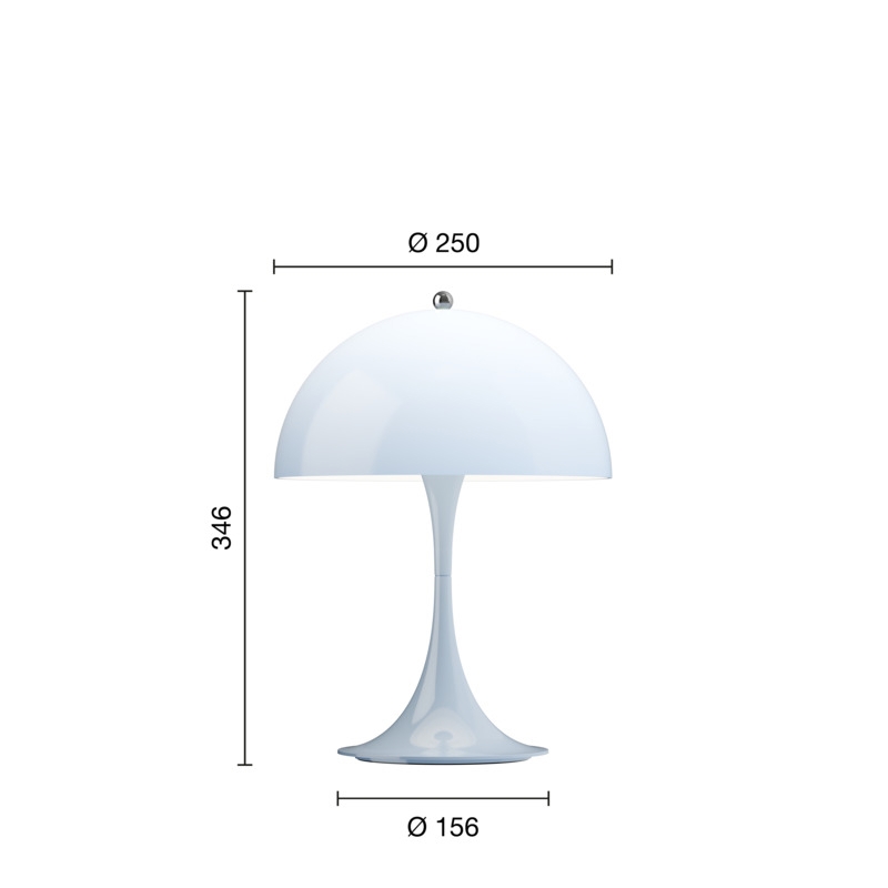 Louis Poulsen Panthella 250 Portable V3 Tischlampe/Batterielampe, hellblau opal - entworfen von Verner Panton