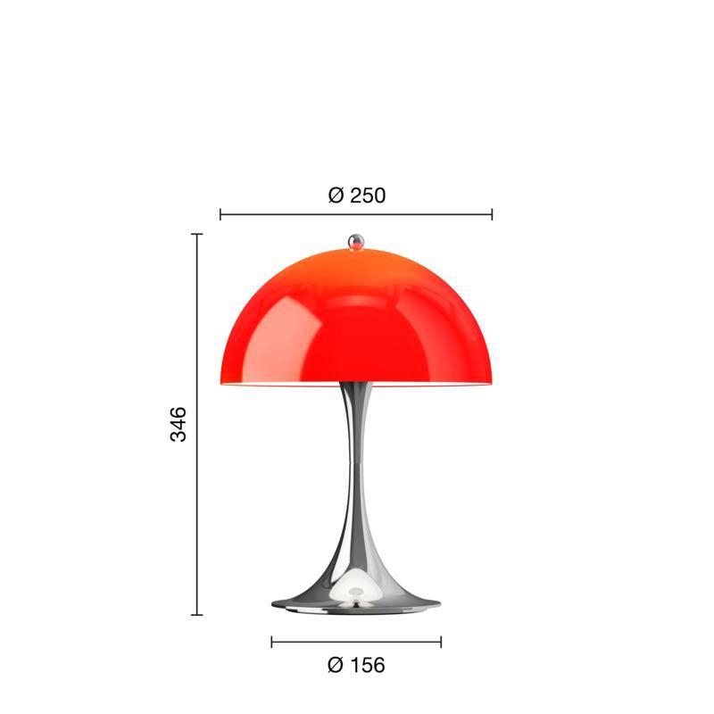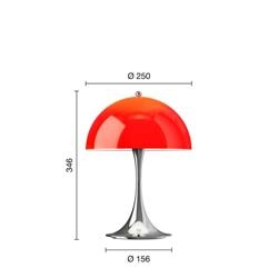 Louis Poulsen Panthella 250 Portable V3 Tischlampe/Batterielampe, Chrom/Original Rot Opal - entworfen von Verner Panton