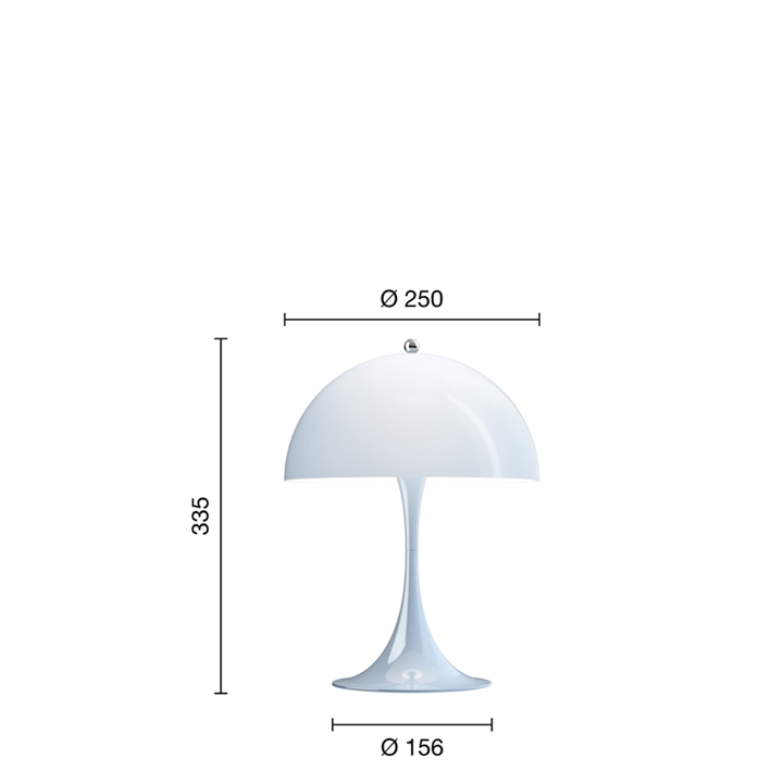 Louis Poulsen Panthella 250 Tischleuchte, hellblaues opales Acryl - entworfen von Verner Panton