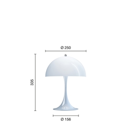 Die Panthella 250 Tischleuchte verfügt über eine stufenlose Dimmung zwischen 15 und 100%, zudem kann man einen Timer einstellen, wann das Licht ausgehen soll, mit der Auswahl zwischen aus/4 Stunden/8 Stunden.