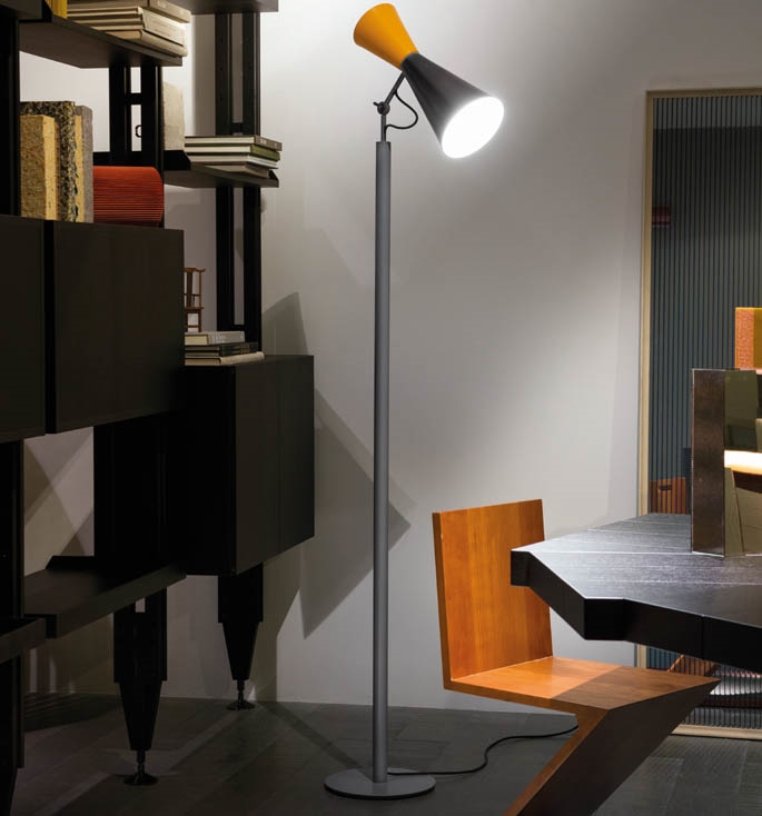 Parliament Stehlampe von Nemo entworfen von Le Corbusier, schwarz/gelb