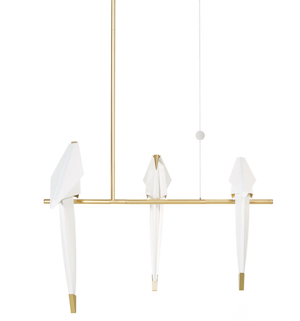 Perch Light Branch besteht aus 3 abstrakten Vögeln, die dem Raum ein wunderschönes Leuchten verleihen. Wenn man die Vögel leicht berührt, können sie schwingen, was ihnen noch mehr Leben verleiht