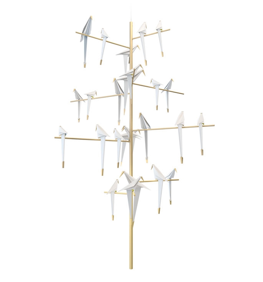 Perch Light Tree ist inspiriert von dem poetischen und eleganten Bild von Vögeln, die auf Ästen sitzen und fröhlich singen, um das Leben zu feiern. Der luxuriöse Kronleuchter ist eine Hommage an die Schönheit der Natur und eine Erinnerung daran, dass der Frühling immer unterwegs ist.