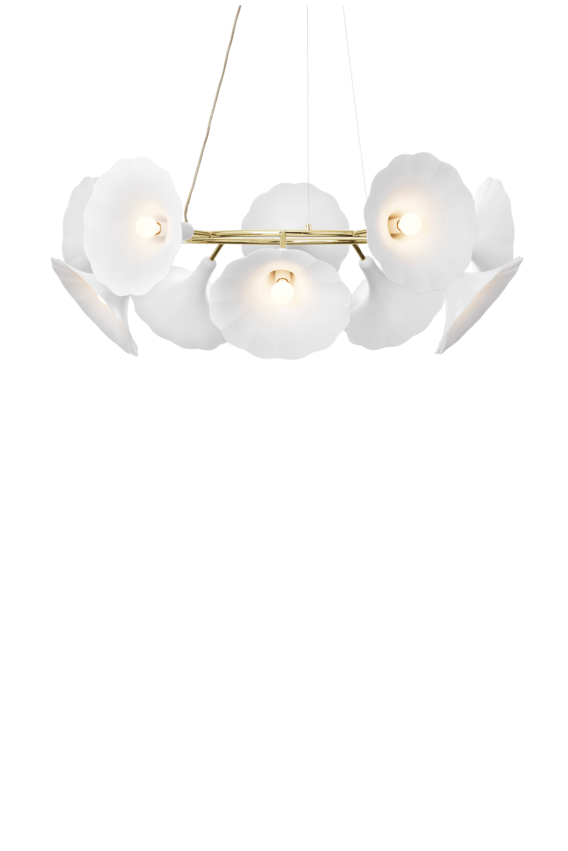 Petalii 10 Kronleuchter, poliertes Messing/Weiß