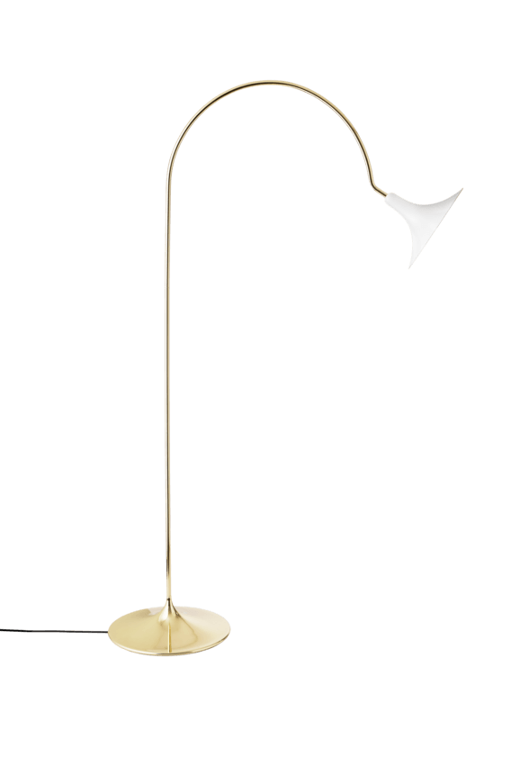 Nuura Petalii Stehleuchte, poliertes Messing/Weiß – Entworfen von Nika Zupanc.
