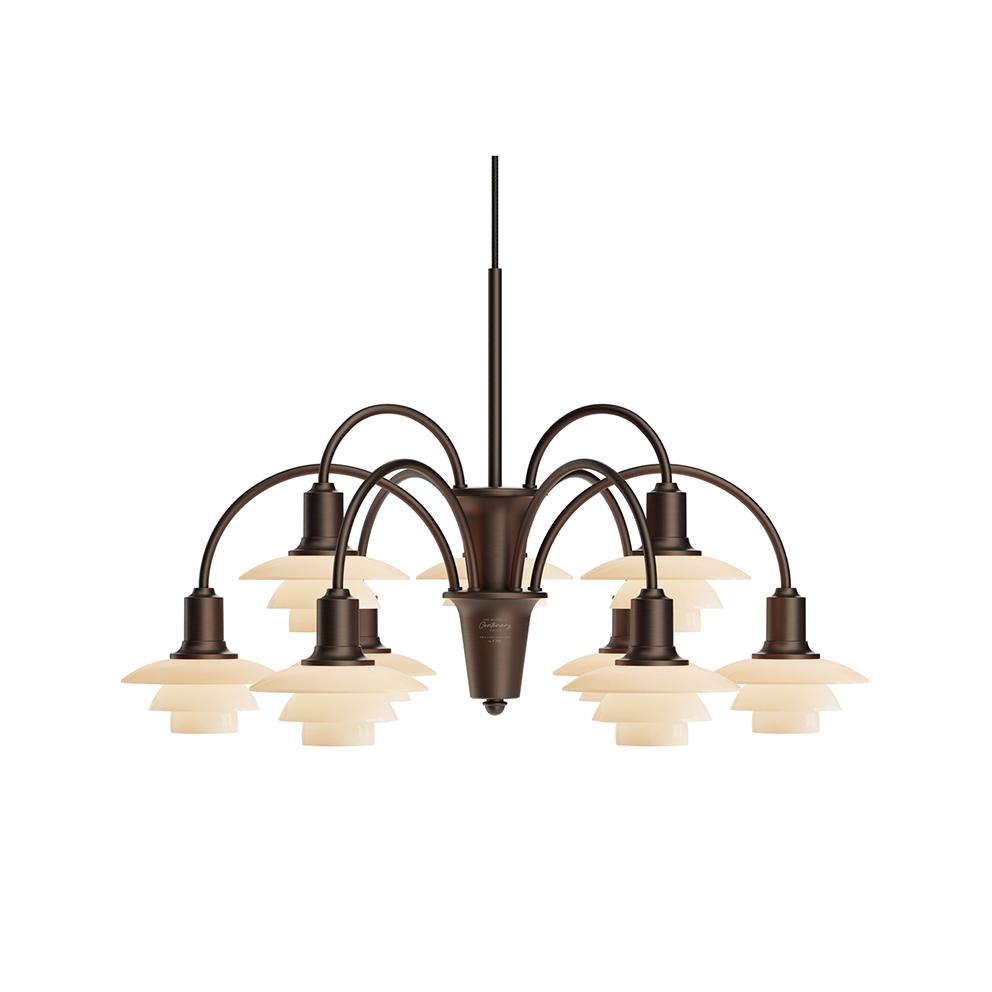 PH 1/1 Kronleuchter Centenary Edition m/9 Armen, aged brass/dusty terracotta