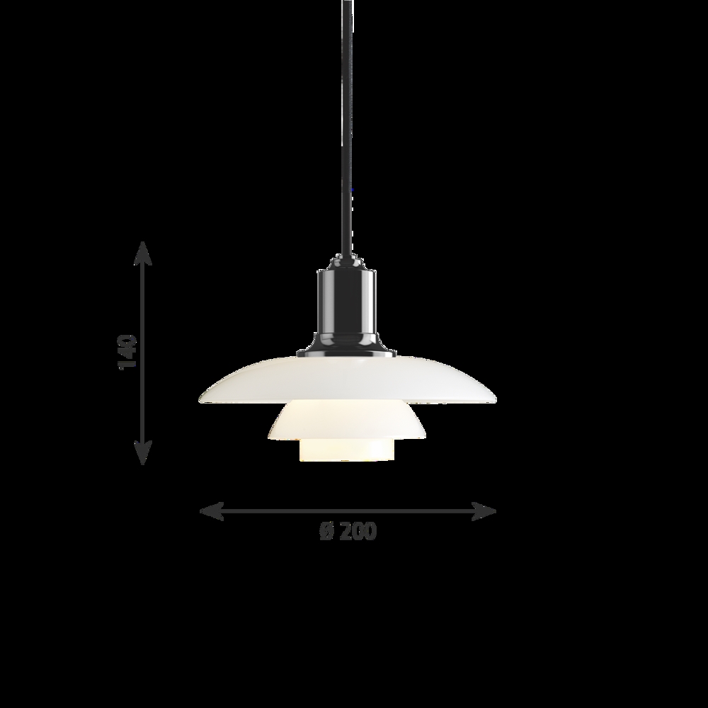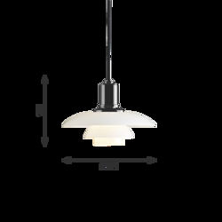 Die einzigartige PH 2/1 Pendelleuchte spendet ein weiches und harmonisches Licht durch das mundgeblasene weiße Opalglas in drei Schichten, das das Licht hauptsächlich nach unten lenkt.