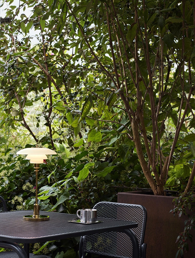 Die tragbare PH 2/1 Tischleuchte kann sowohl drinnen als auch draußen verwendet werden. Der Akku kann mit einem USB-Kabel oder kabellos aufgeladen werden und bietet 5,5 Stunden Licht bei voller Stärke, 13 Stunden bei 45 Prozent, 45 Stunden bei 20 Prozent und 120 Stunden bei fünf Prozent. Sowohl der Akku als auch die LED-Lichtquelle sind in die Lampe integriert und können von einem Elektriker ausgetauscht werden.