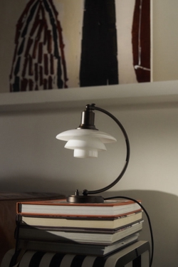 Louis Poulsen PH 2/2 Luna Tischleuchte, aged brass/opal – entworfen von Poul Henningsen