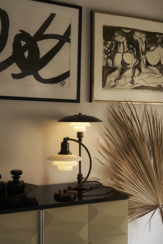 Die schöne PH Tischleuchte 2/2 Luna in brüniertem Messing mit mundgeblasenen 3-lagigen Opalglasschirmen ist Teil der Louis Poulsen Aged Brass-Kollektion lanciert in 2025. Die Kollektion umfasst die PH 2/2 Luna Tischleuchte, die PH 3/2 Tischleuchte und das PH 3/3 Pendel und ist eine Hommage an den Schöpfer Poul Henningsen sowie das zeitlose Design und die außergewöhnliche Handwerkskunst der Leuchten.