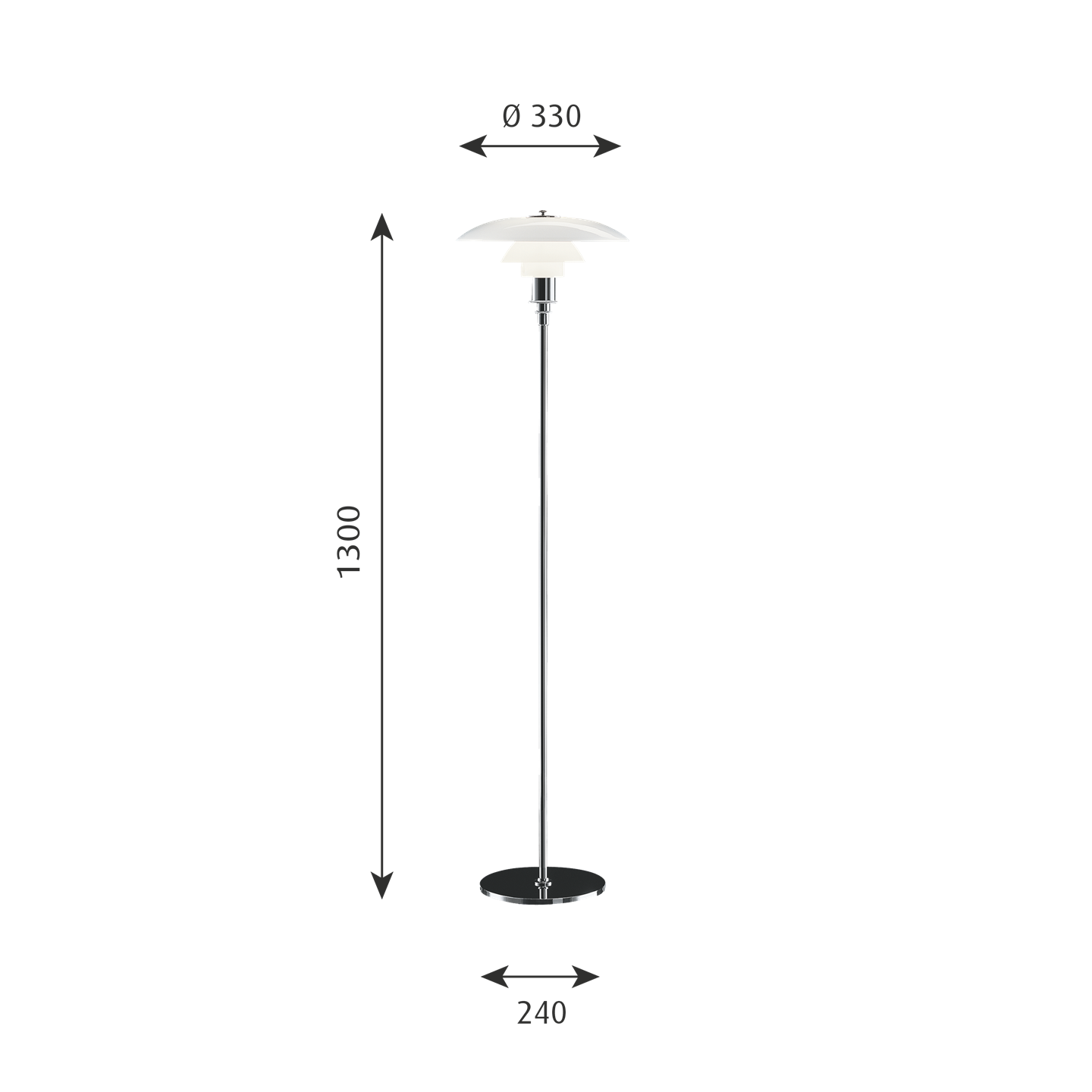 Louis Poulsen PH 3½-2½ Stehleuchte, Chrom - entworfen von Poul Henningsen.