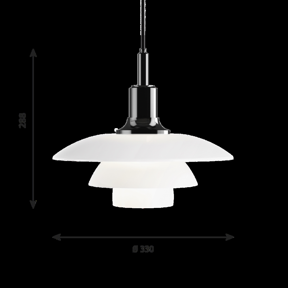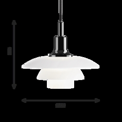 Die PH-Lampennummer bezieht sich auf die Größe der Lampenschirme. Daher besteht die PH 3½-3 Pendelleuchte aus einem Oberschirm von ca. 35 cm und Unterschirmen aus der 3/3 Version.