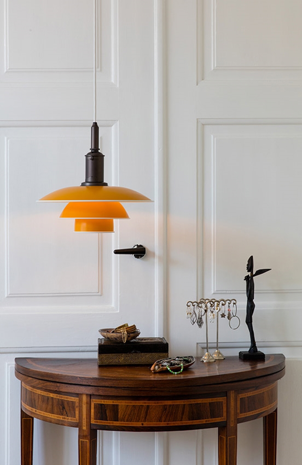Die außergewöhnliche PH 3½-3 Pendel bietet ein gutes und dekoratives Licht aus den farbigen Metallschirmen in drei Schichten, die das Licht hauptsächlich nach unten lenken. Die PH 3½-3 Pendel ist basierend auf Poul Henningsens ikonischem Dreischirmsystem von 1926 entworfen, das für eine fantastische blendfreie Lichtverteilung sorgt. Die einzigartige Pendel ist unglaublich vielseitig und passt sowohl in klassische als auch moderne Einrichtungen.