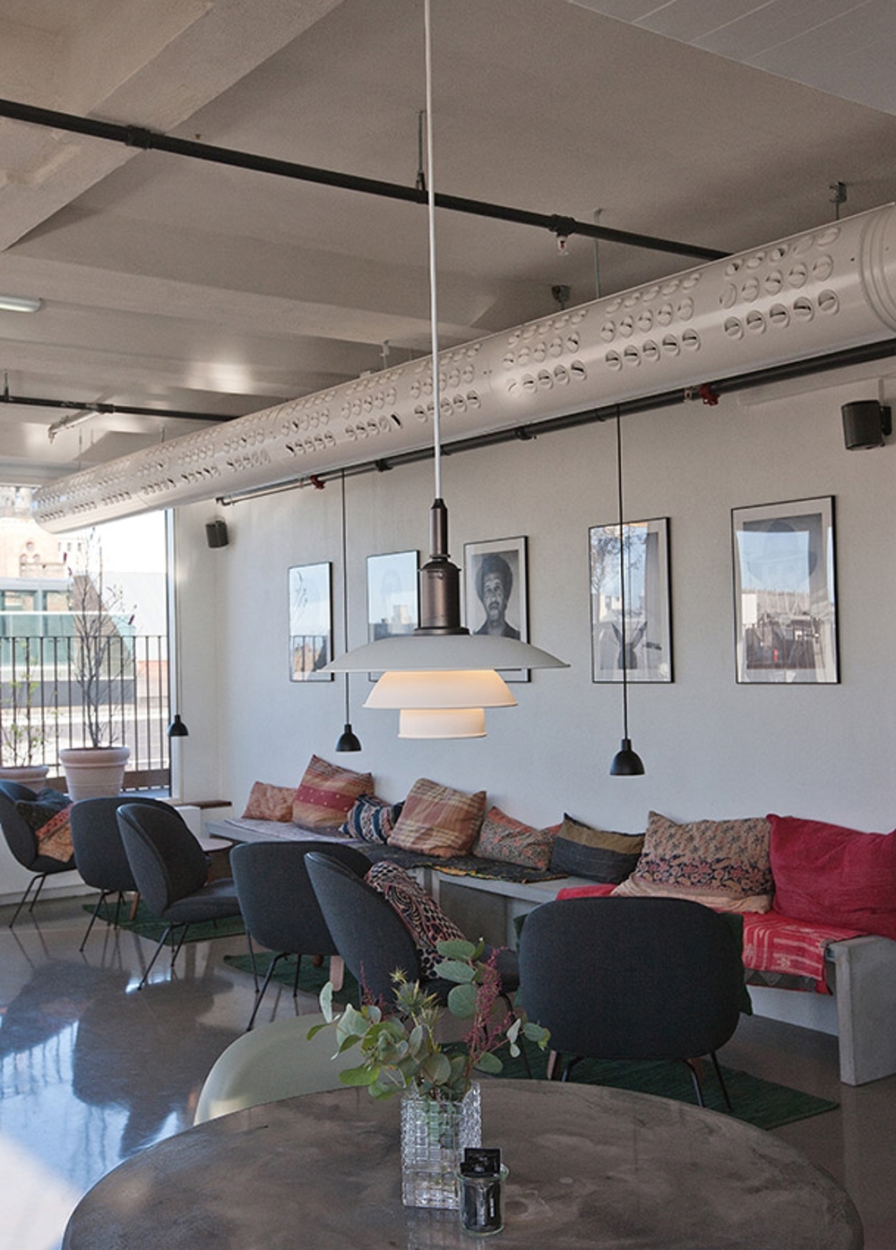 Diese Ausgabe der PH 3½-3 Pendel mit Metallschirmen ist in Rot, Grün, Gelb und Weiß erhältlich, es gibt aber auch Glasversionen derselben Lampe.