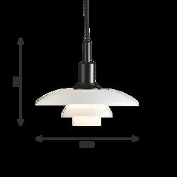 Die PH-Lampennummer bezieht sich auf die Größe der Lampenschirme. Daher besteht die PH 3/2 Pendelleuchte aus einem oberen Schirm von ca. 30 cm und unteren Schirmen, die von der 2/2-Version stammen.