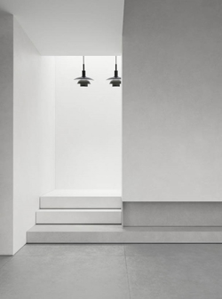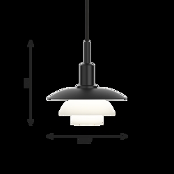 PH 3/3 hat eine Fassung aus matt schwarz pulverbeschichtetem, gegossenem Zink. PH 3/3 ist auch mit komplett weißen, opalen Glasschirmen oder mit komplett matt schwarzen Metallschirmen erhältlich.