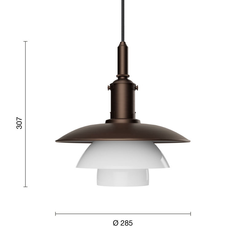 Die außergewöhnliche PH 3/3 Pendelleuchte in brüniertem Messing ist Teil der Louis Poulsen Aged Brass-Kollektion, die 2025 eingeführt wurde. Die Kollektion umfasst die PH 2/2 Luna Tischleuchte, die PH 3/2 Tischleuchte und die PH 3/3 Pendelleuchte und ist eine Hommage an den Schöpfer Poul Henningsen sowie das zeitlose Design und die außergewöhnliche Handwerkskunst der Leuchten.
