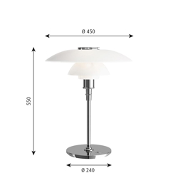 Louis Poulsen PH 4½-3½ Tischleuchte, Chrom - entworfen von Poul Henningsen.