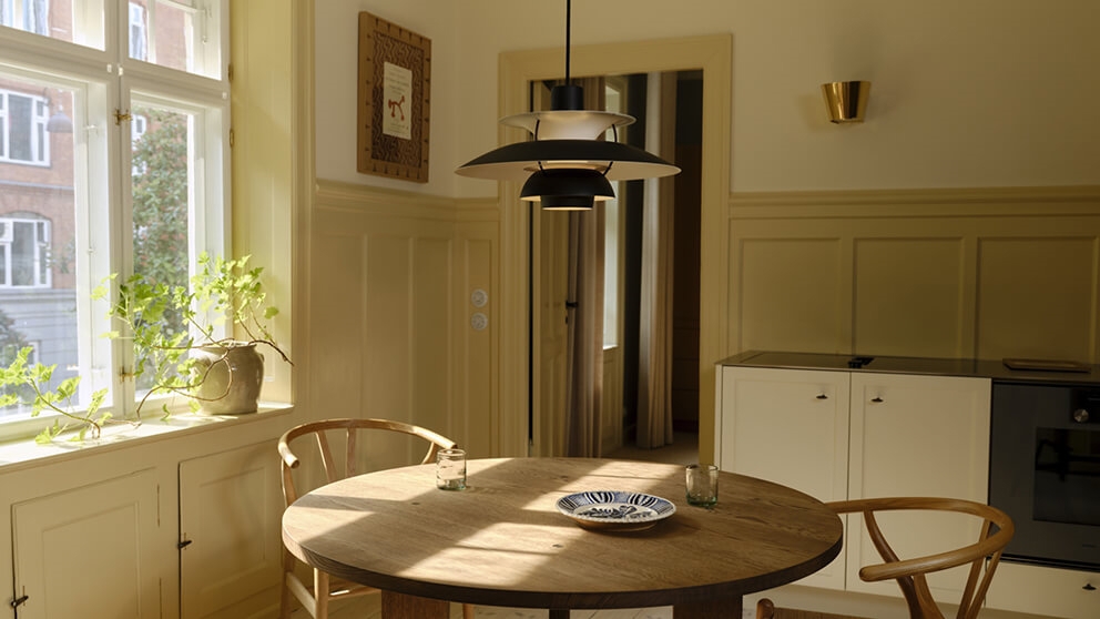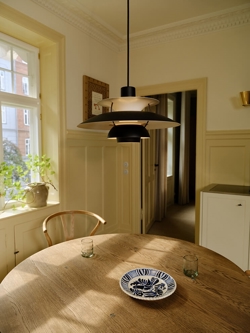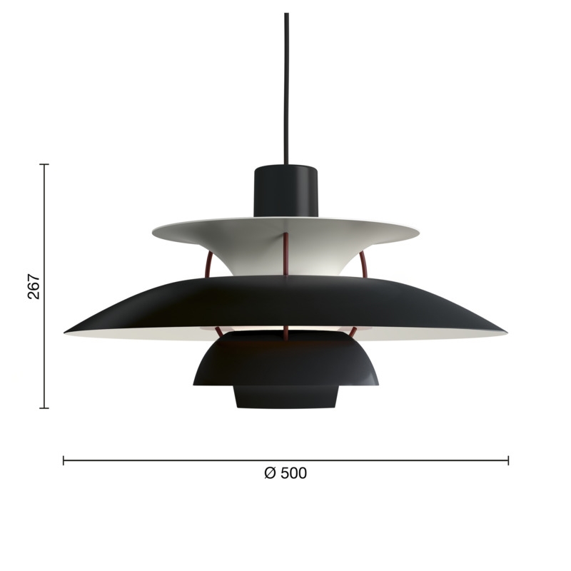Die PH-Lampennummer bezieht sich auf die Größe der Lampenschirme. Daher besteht die PH 5 Pendelleuchte aus einem Oberschirm mit einem Durchmesser von ca. Ø50 cm.