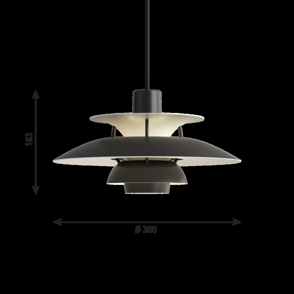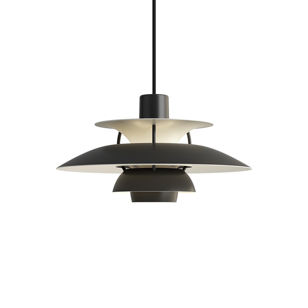 Louis Poulsen PH 5 Mini Pendelleuchte, monochrom schwarz - entworfen von Poul Henningsen.