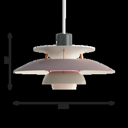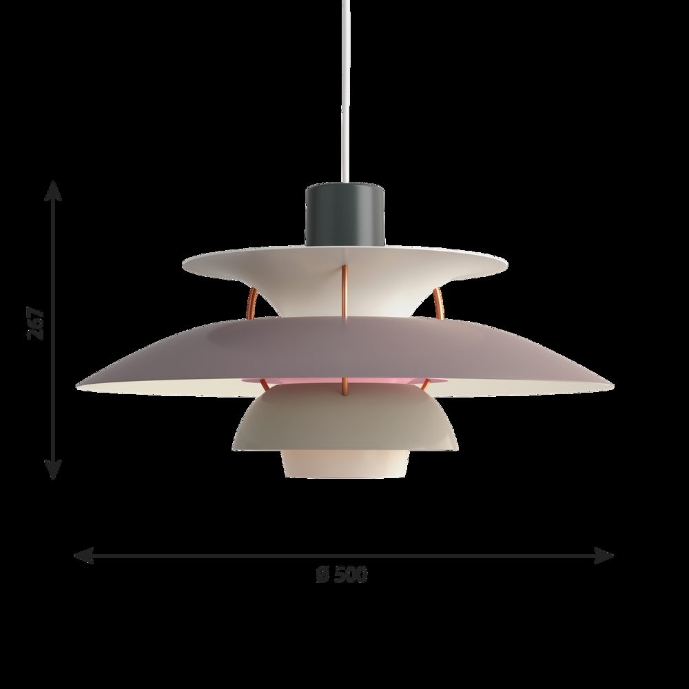 Die PH-Lampennummer bezieht sich auf die Größe der Lampenschirme. Daher besteht die PH 5 Pendel aus einem Oberschirm von ca. Ø50 cm.