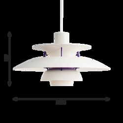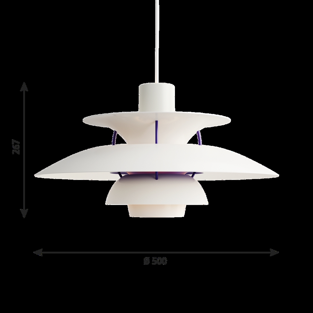 Die PH-Lampennummer bezieht sich auf die Größe der Lampenschirme. Daher besteht die PH 5 Pendel aus einem Oberschirm von ca. Ø50 cm.