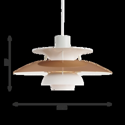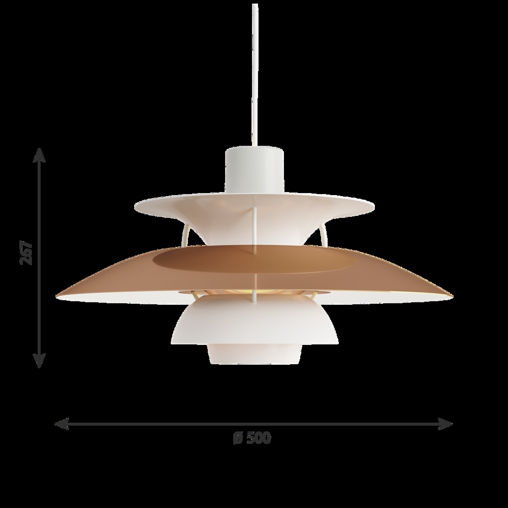 Die PH-Lampennummer bezieht sich auf die Größe der Lampenschirme. Daher besteht die PH 5 Pendelleuchte aus einem oberen Schirm von ca. Ø50 cm.