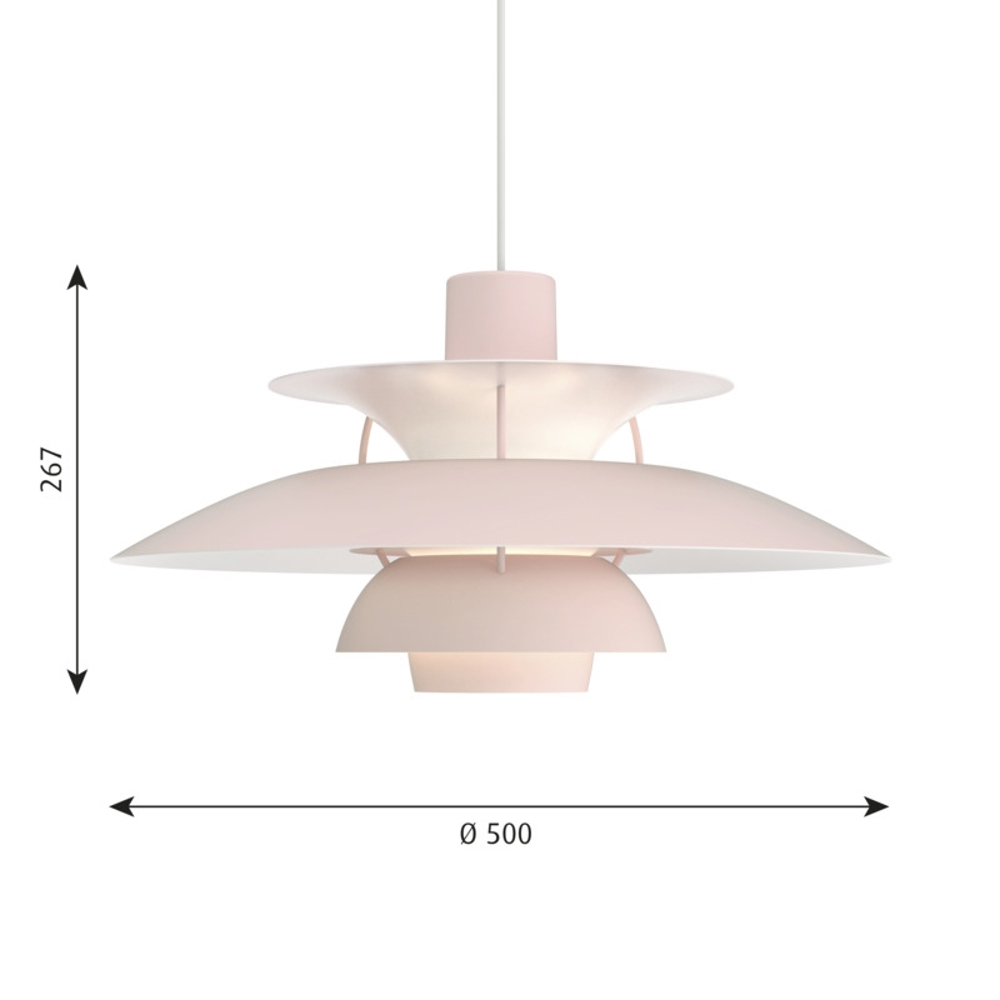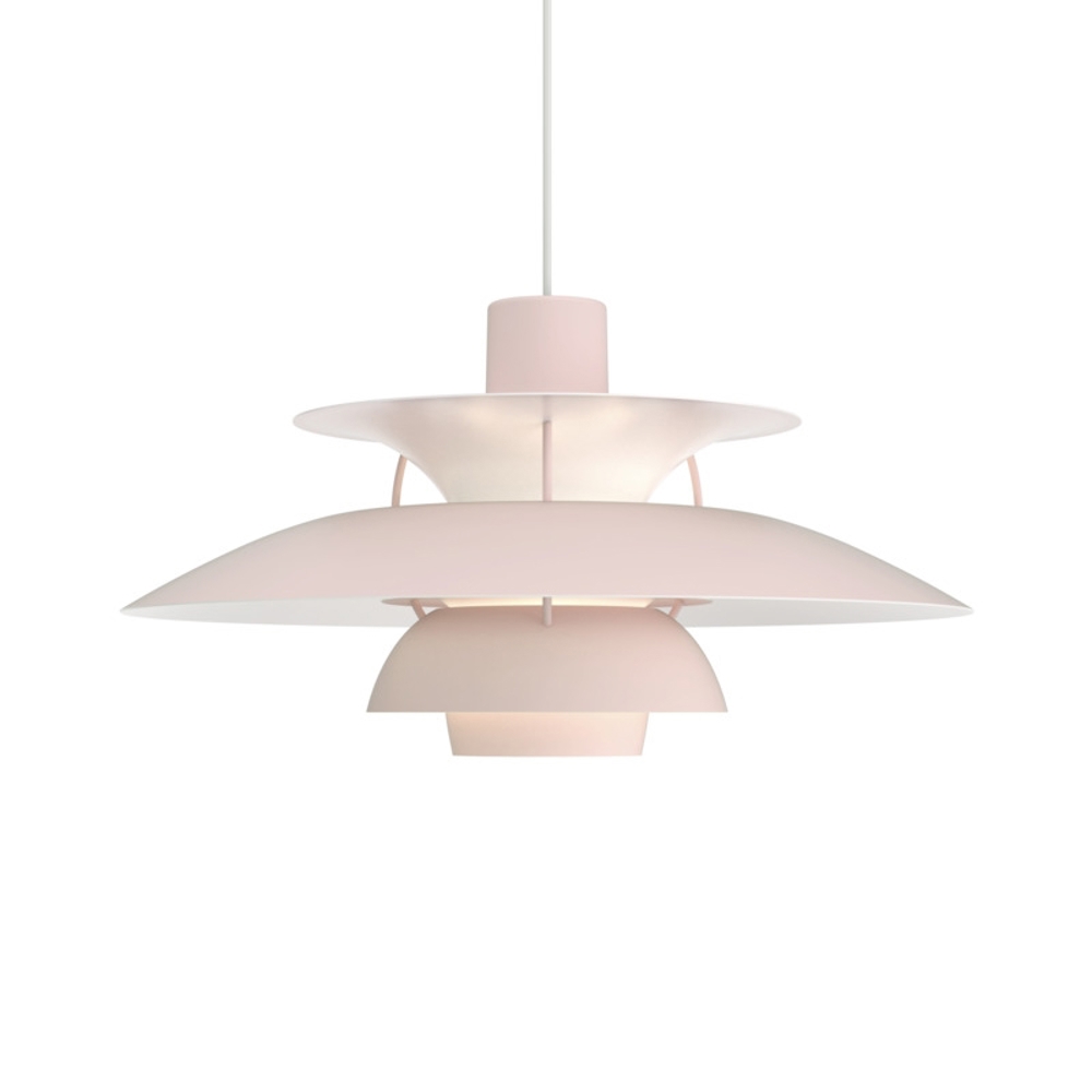 Louis PoulsenPH 5 Pendelleuchte, monochrom hellrosa - entworfen von Poul Henningsen.