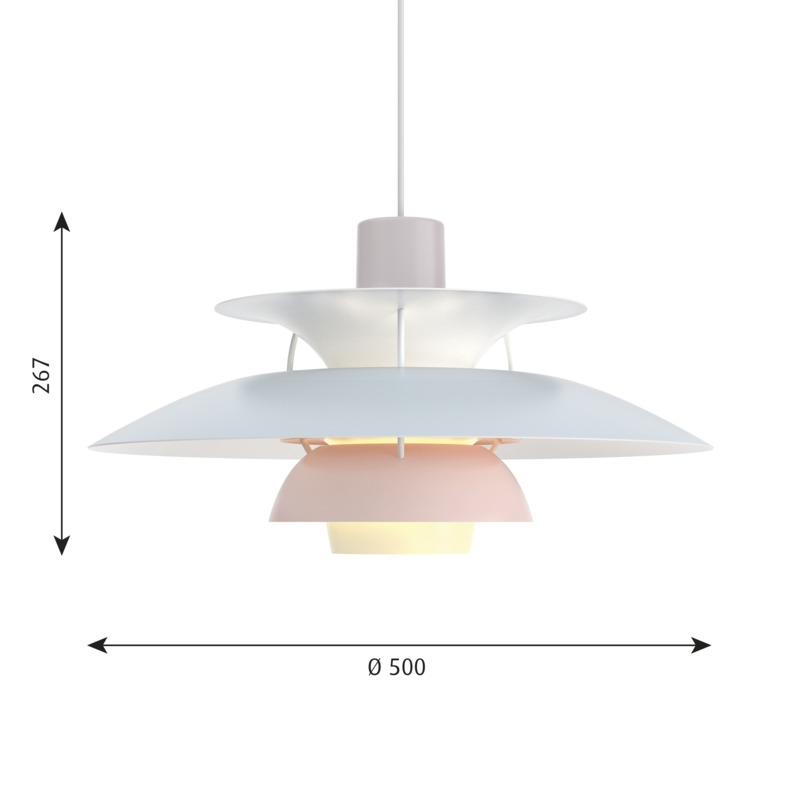 Die PH-Lampennummer bezieht sich auf die Größe der Lampenschirme. Daher besteht die PH 5 Pendelleuchte aus einem Oberschirm mit ca. Ø50 cm.