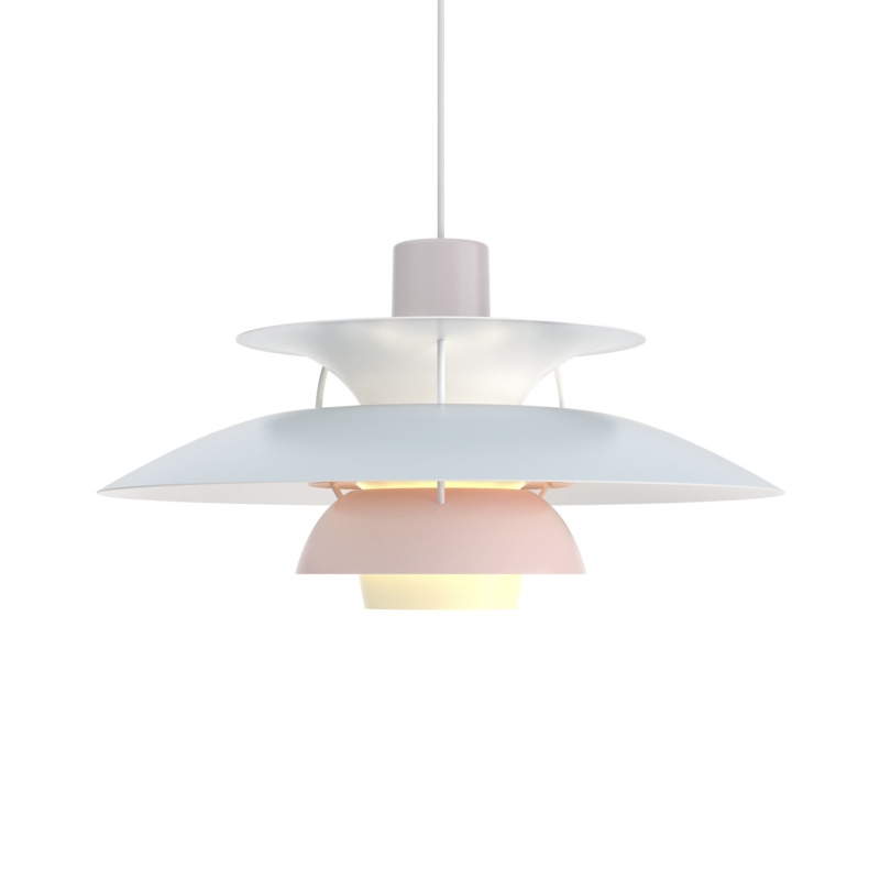 Louis Poulsen PH 5 Pendelleuchte, Pastell Oyster Grau/Blau/Rosa - entworfen von Poul Henningsen.