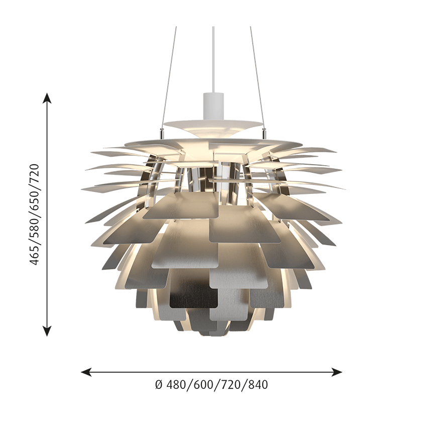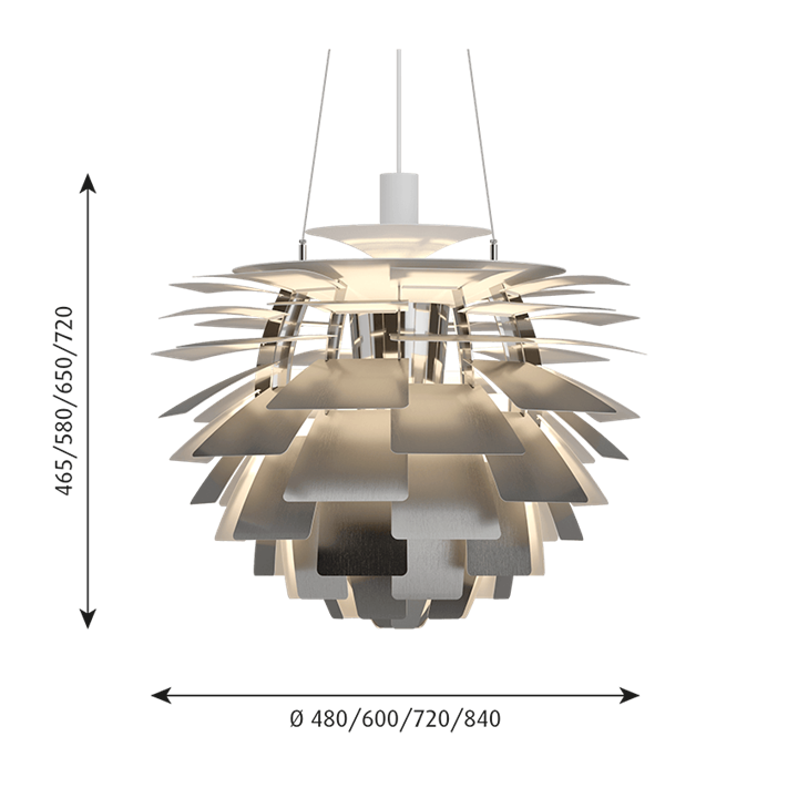 Die PH Artichoke wurde 1958 für das damals moderne Restaurant Langelinie Pavillonen in Kopenhagen entworfen. Die Idee der Blätter der PH Artichoke ist inspiriert von der PH Septima Glass Light Lampe.