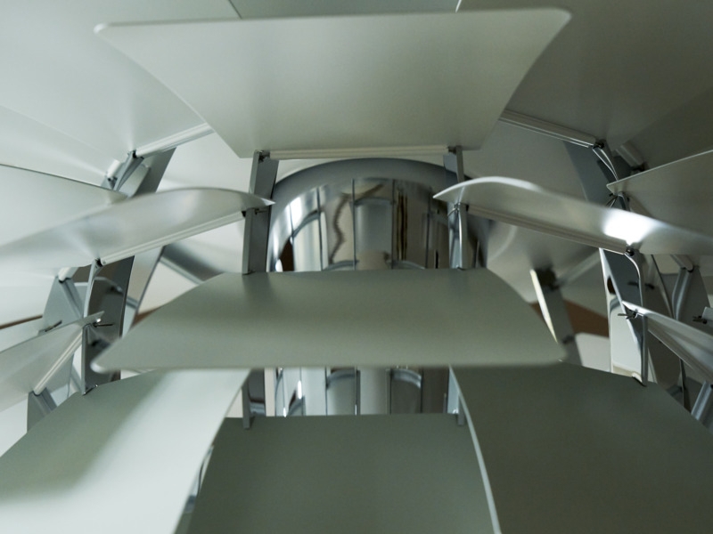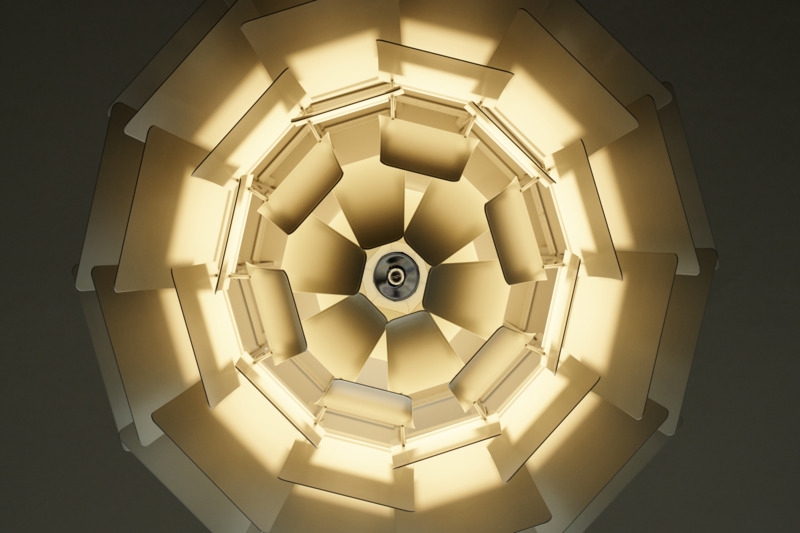 Egal aus welchem Winkel man die außergewöhnliche PH Artichoke Pendelleuchte betrachtet, sie strahlt ein angenehmes, blendfreies Licht aus. Dies verdankt sie den 72 Metallblättern, die 12 präzise Reihen mit je sechs Blättern bilden.
