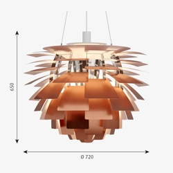 PH Artichoke wurde 1958 für das damals moderne Restaurant Langelinie Pavillonen in Kopenhagen entworfen. Die Idee der Blätter der PH Artichoke ist inspiriert von der PH Septima Glass Light Lampe.