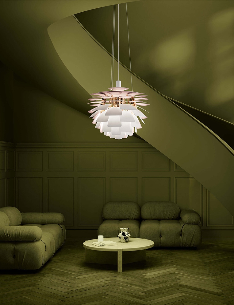 Die PH Artichoke wurde 1958 für das damals moderne Restaurant Langelinie Pavillonen in Kopenhagen entworfen. Die Idee der Blätter der PH Artichoke ist von der PH Septima Glass Light Lampe inspiriert.