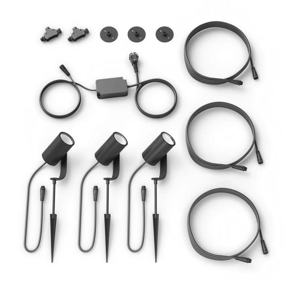 Philips Hue Lily White and Color Ambiance Outdoor Spike Spot Basisset, Schwarz (3 Stk.)