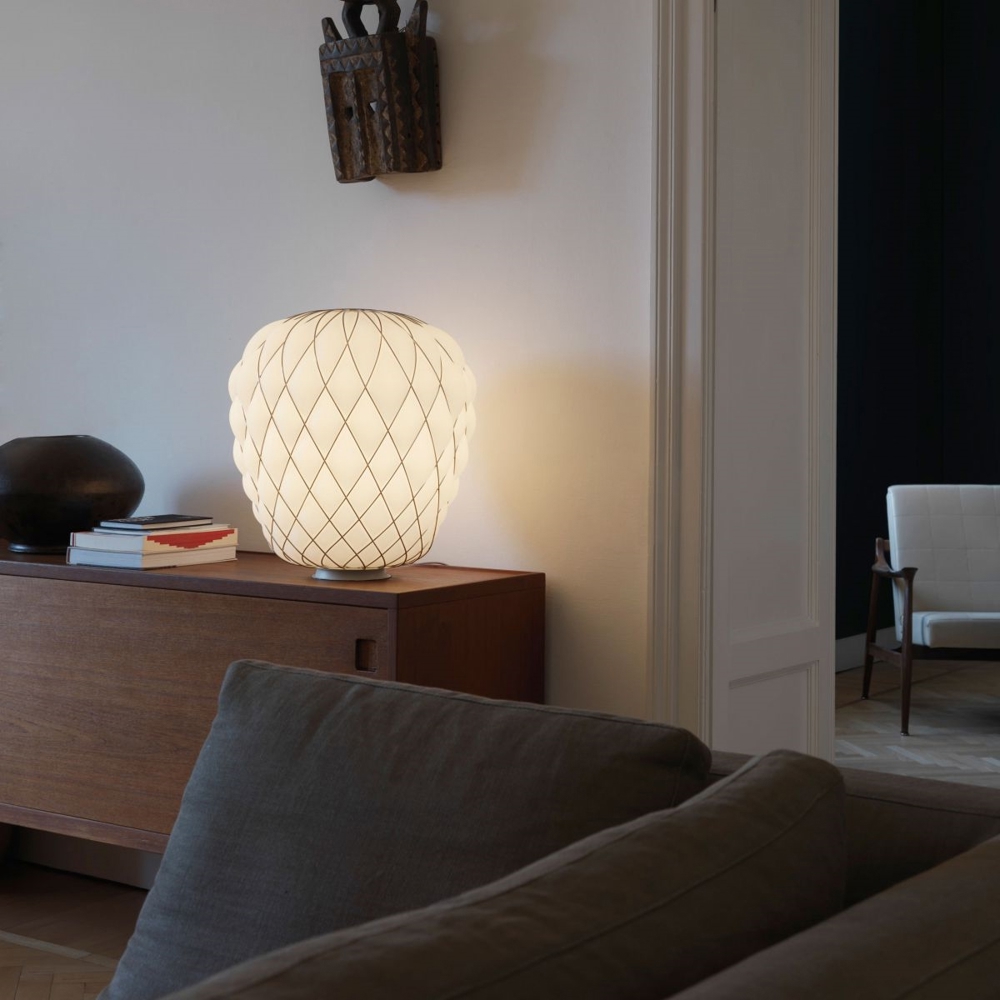 FontanaArte Pinecone Tischlampe ist eine unglaublich schöne Tischlampe, sowohl wenn sie eingeschaltet als auch ausgeschaltet ist. Die Tischlampe ist äußerst dekorativ und kann an verschiedenen Orten im Haus platziert werden.