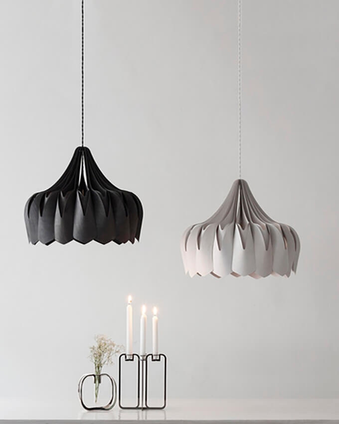 Pioni ist eine schöne Pendelleuchte, die mit ihrem blumenförmigen Schirm eine sanfte Atmosphäre in jedem Zuhause schafft. Das Licht scheint sanft durch die kleinen Löcher im Schirm und erzeugt so einen angenehmen und ruhigen Effekt.