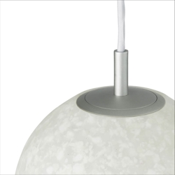 Pix ist eine Kollektion von Pendelleuchten in archetypischer sphärischer Form und einer kreisförmigen Zusammensetzung aus 100% recyceltem Plastikmüll.