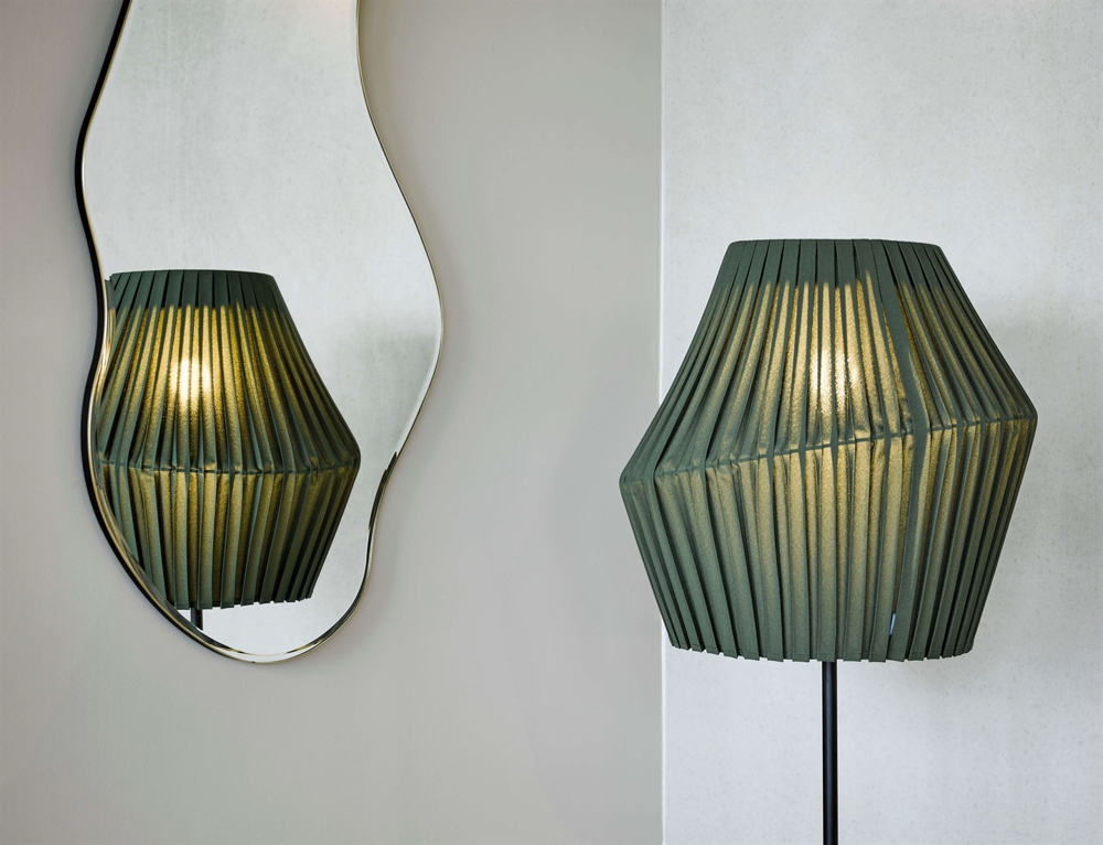 Hollands Licht Pleat Pendelleuchte oder Pleat Stehlampe, Schirm 50 cm, deep green – entworfen von Wiebe Boonstra, Martijn Hoogendijk und Marc van Nederpelt