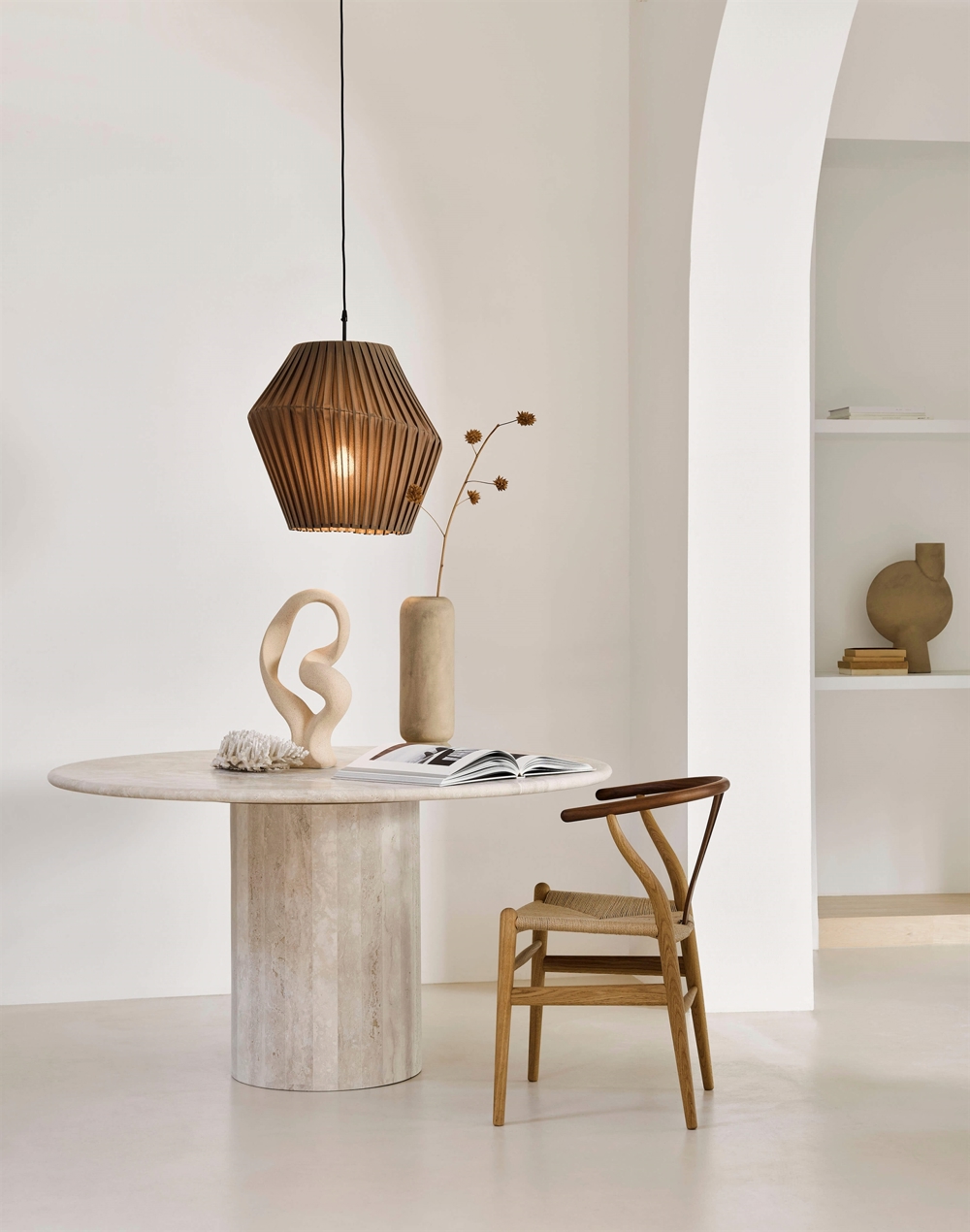 Pleat hat ein leichtes und klassisches Design und ist sowohl als Pendelleuchte als auch als Stehlampe mit Schirmen in zwei verschiedenen Größen und fünf verschiedenen Farben erhältlich - Off White, Anthrazit, Deep Green/Grün, Sand Taupe und Cinnamon Brown/Braun.