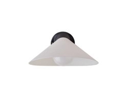 Plume Wandleuchte hat eine schwarze Basis aus Aluminium. Sie ist in verschiedenen Modellen mit IP20-Klassifizierung mit Schirm aus Polycarbonat oder Porzellan und in dieser Bath-Variante mit Schirm aus entweder Polycarbonat oder Porzellan. Die Bath-Variante hat eine IP44-Klassifizierung, sodass sie im Badezimmer und in anderen Feuchträumen verwendet werden kann.