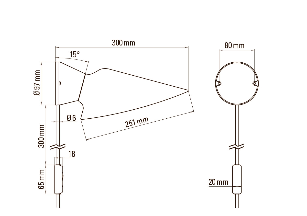 Plume Wandleuchte m. Kabel, schwarz/Polycarbonat