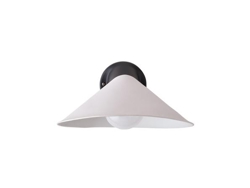 Die Plume Wandleuchte hat eine schwarze Basis aus Aluminium und ist in verschiedenen Modellen erhältlich – entweder mit einem Schirm aus Polycarbonat oder Porzellan, zudem gibt es sie sowohl mit als auch ohne Kabel und mit oder ohne Schalter.