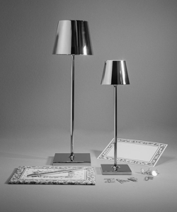 Zafferano Poldina Pro micro Akkuleuchte/Tischleuchte, poliertes Chrom