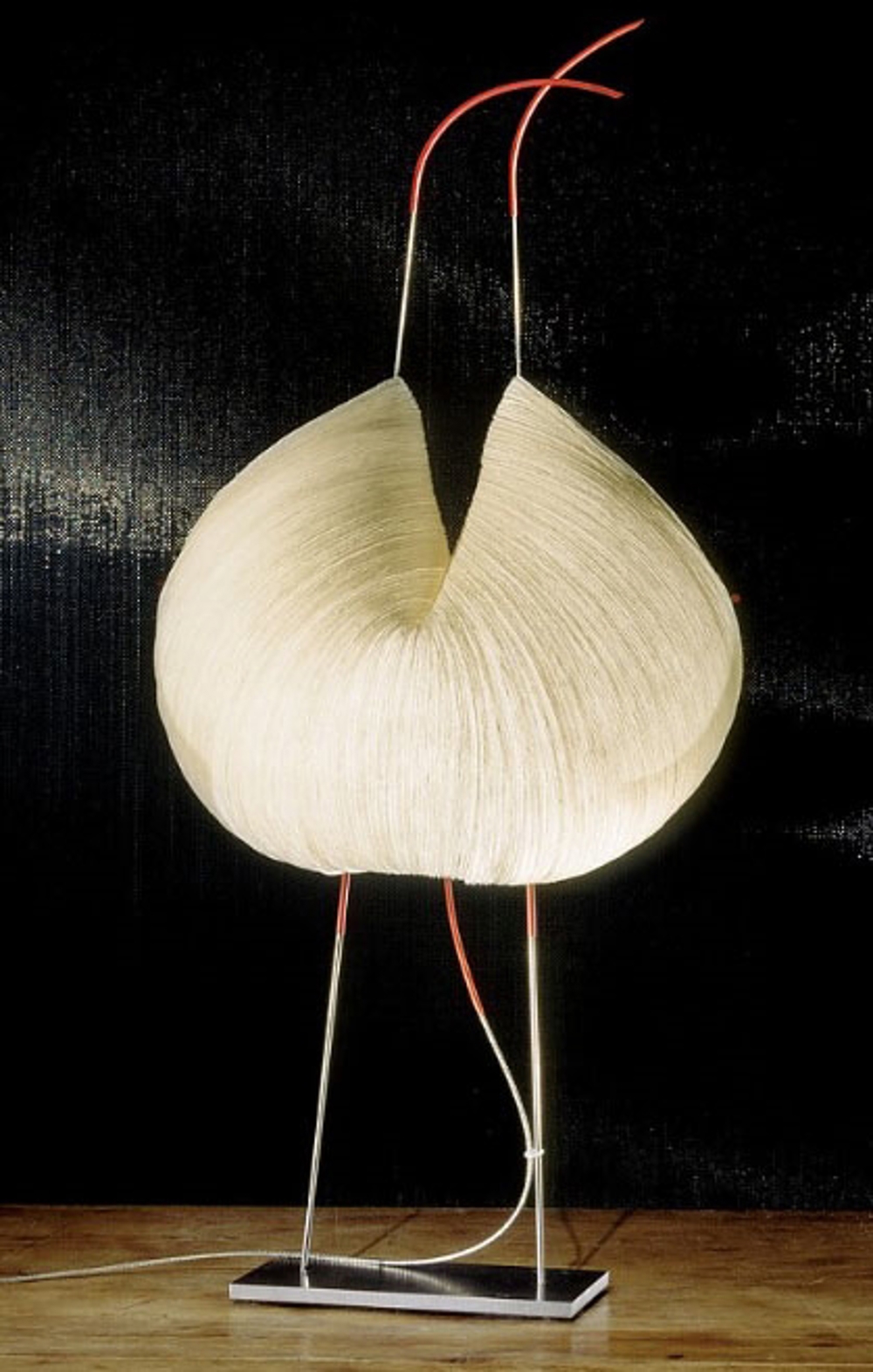 Die Lampe ist Teil der Kollektion von Papierlampen des deutschen Lichtkünstlers Ingo Maurer & Dagmar Mombach, die alle ein besonders leichtes und schwebendes Aussehen haben.