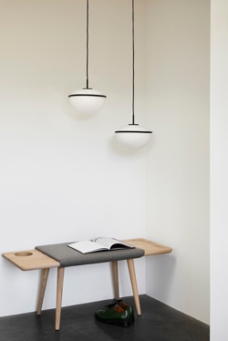 Woud Pump Pendelleuchte, opal/schwarz – entworfen von Kutarq Studio