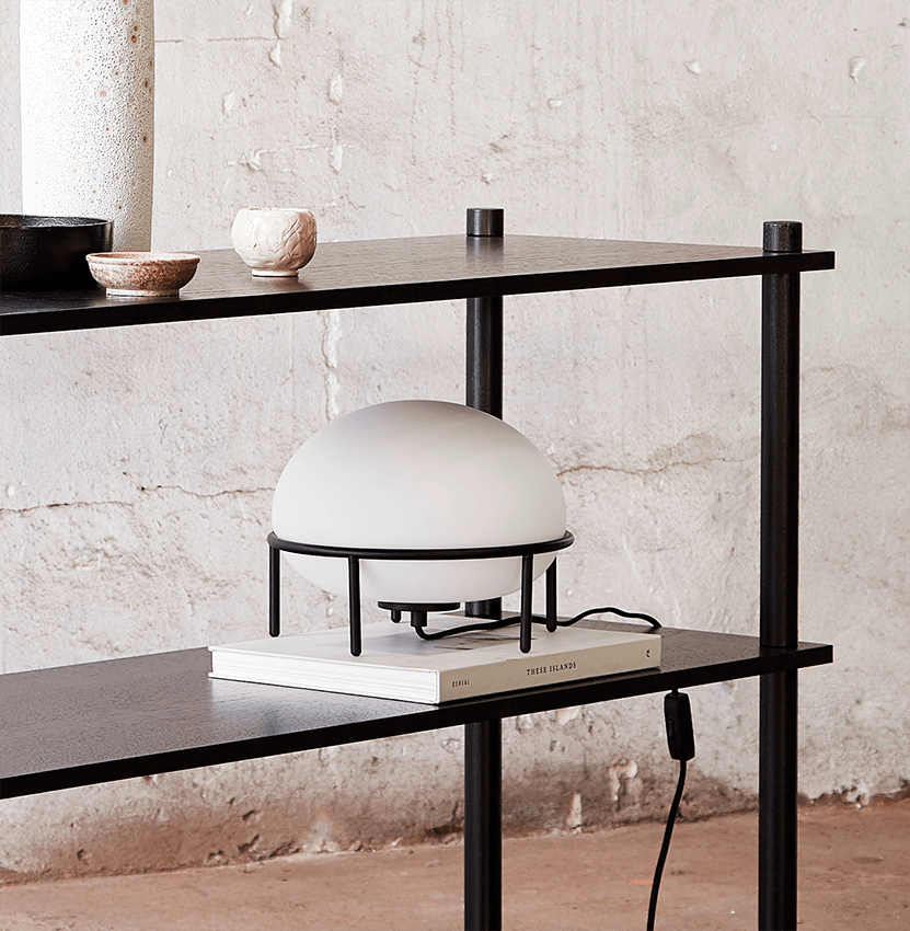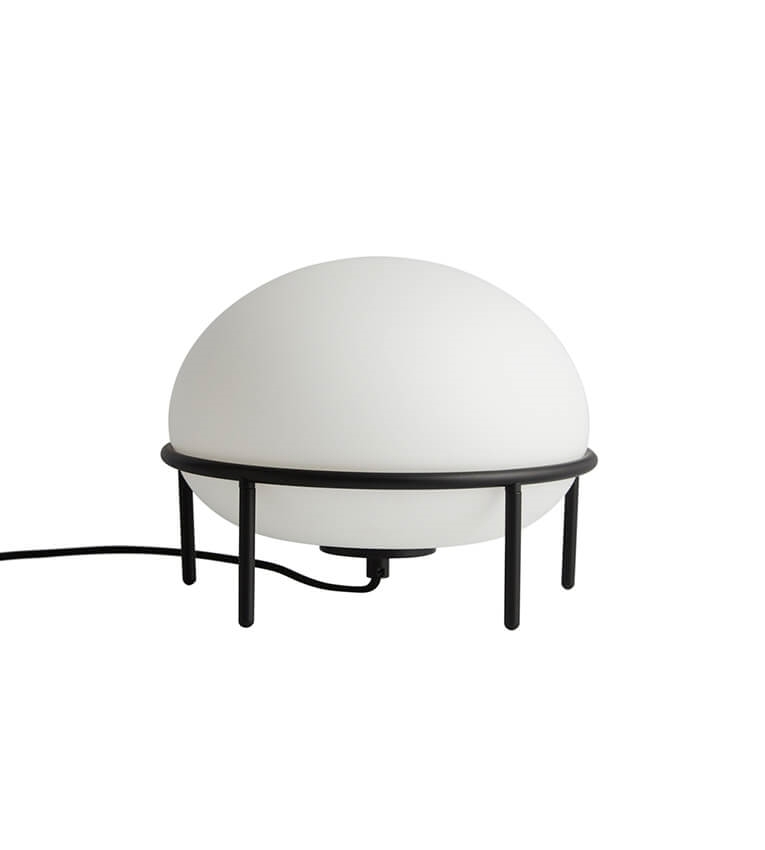 Woud Pump Tischleuchte, opal/schwarz – entworfen von Kutarq Studio