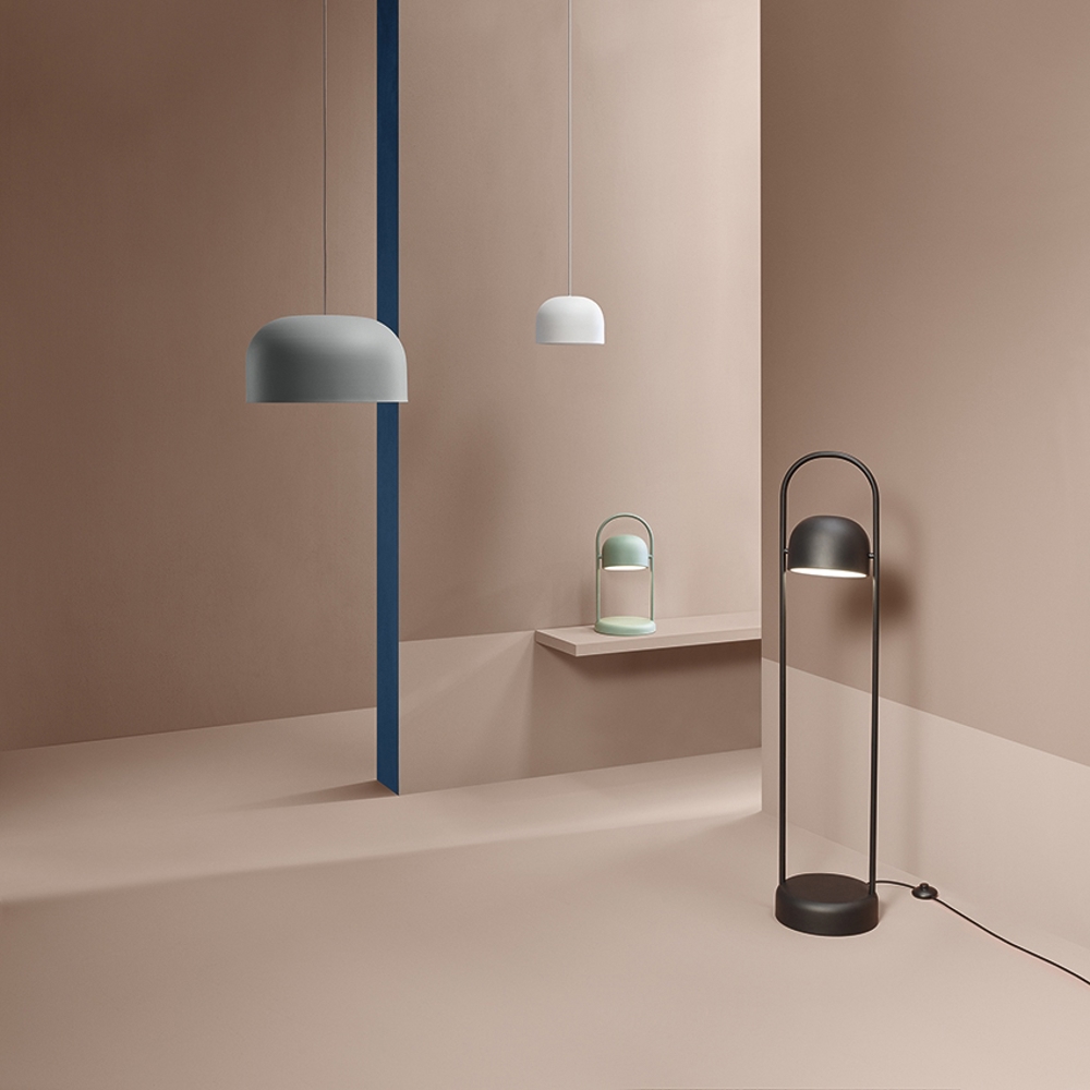 Die Quay Serie besteht aus Tischlampen, Stehlampen und Pendelleuchten in zwei Größen.