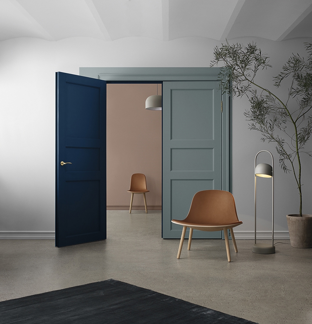 Die Lampe besteht aus pulverbeschichtetem Aluminium und ist in Schwarz, Weiß, Stone und Pine Green erhältlich.